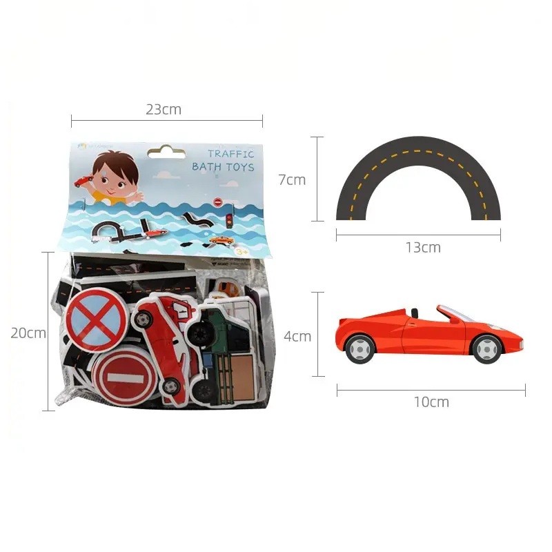 Această jucărie este ideală pentru părinții care doresc să facă timpul petrecut de copii în baie mai plăcut. Datorită vehiculelor rutiere, copiii se vor distra și în același timp își vor îmbunătăți motricitatea fină și coordonarea. Setul este de asemenea un instrument excelent pentru dezvoltarea imaginației, deoarece copiii pot crea diferite scenarii cu vehiculele.