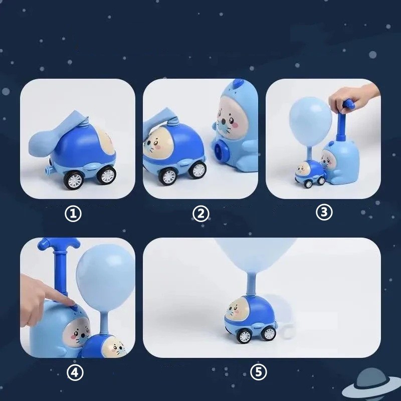 Această jucărie interactivă cu pompă oferă copiilor distracție nesfârșită și dezvoltă în același timp curiozitatea, imaginația și gândirea logică. Prin intermediul pompei, baloanele se umplu cu aer, care propulsează mașinuța sau racheta. Astfel, copiii descoperă într-un mod jucăuș principiile presiunii aerului și forței de reacție, stimulându-le interesul natural pentru fizică și experimentare.