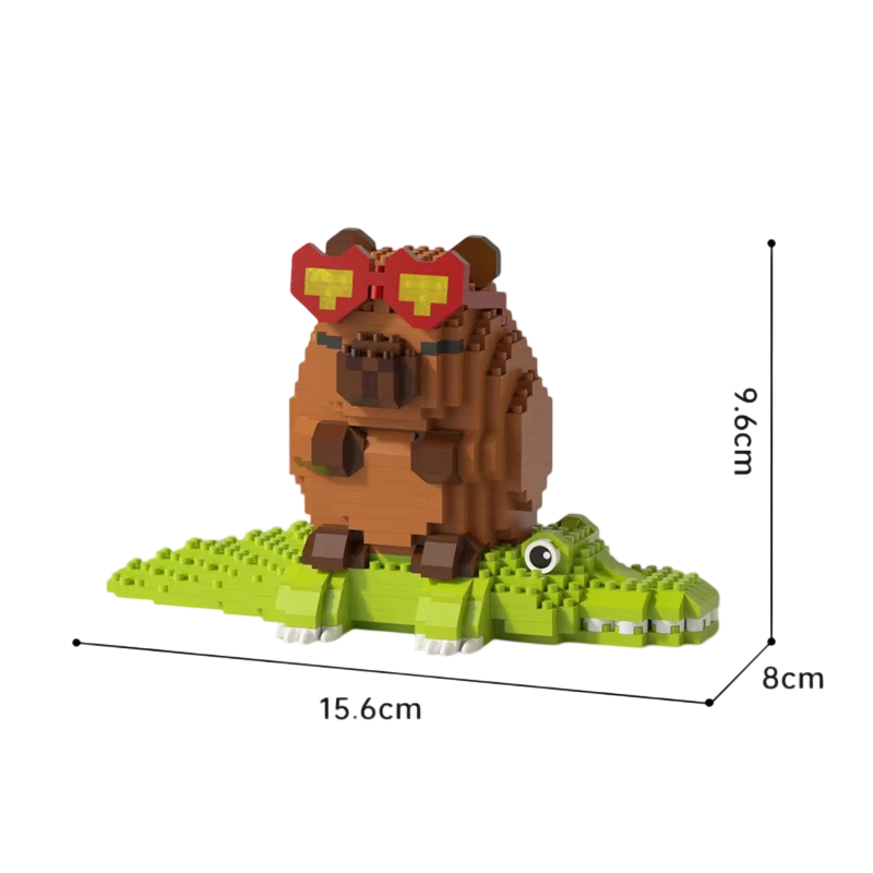 - Model detaliat al kapybarei cu crocodilul din blocuri micro de construcție
