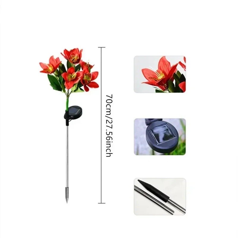 Lampă LED solară cu flori din material de mătase. Alimentată cu energie solară, ideală pentru grădini și curți. Iluminat exterior eficient și ecologic. Descrierea completă