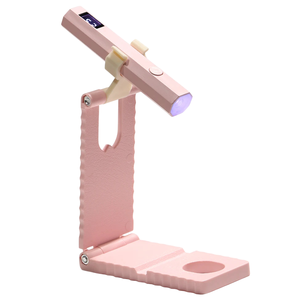 Această lampă UV practică este ajutorul ideal pentru modelarea unghiilor gel și acril acasă sau în deplasare. Datorită dimensiunilor compacte și greutății reduse, se potrivește ușor în poșetă sau în trusa de cosmetice. Designul modern cu suport permite utilizarea confortabilă fără a fi necesar să o ții în mână. Lampa este concepută pentru a asigura întărirea uniformă și rapidă a materialului. Este potrivită atât pentru începători, cât și pentru utilizatori avansați.