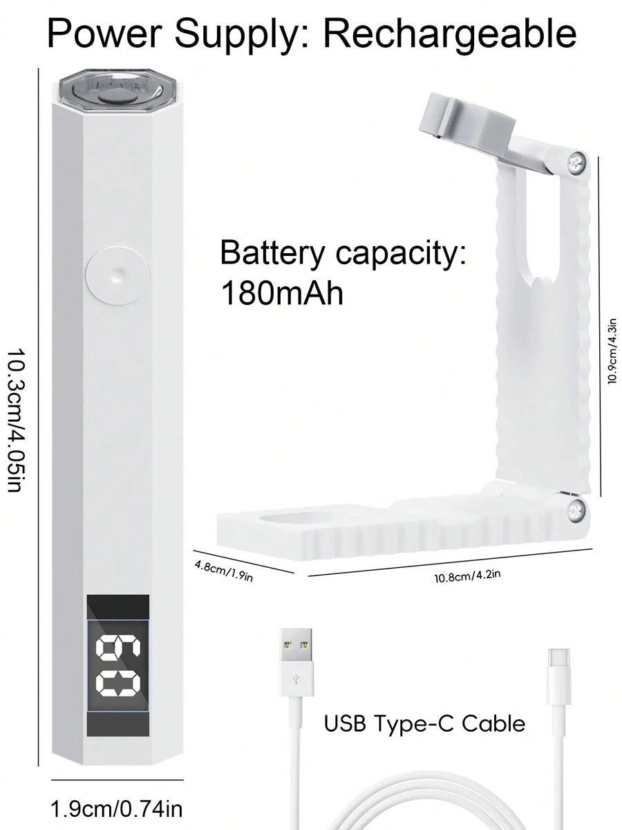 Lampă UV portabilă pentru unghii gel și acril 10 x 2 x 1,7 cm Lampă manuală reîncărcabilă cu suport USB-C 20 s / 60 s temporizator LED