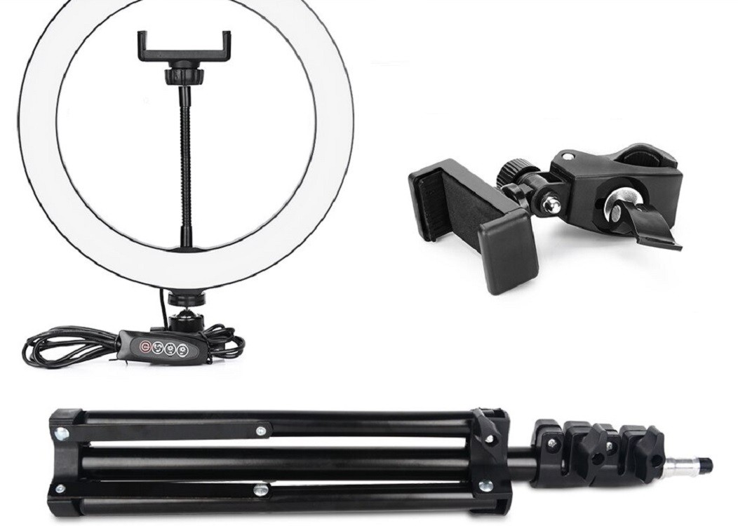 Conținutul pachetului: 1x lumină, 1x trepied, 1x suport pentru telefon
