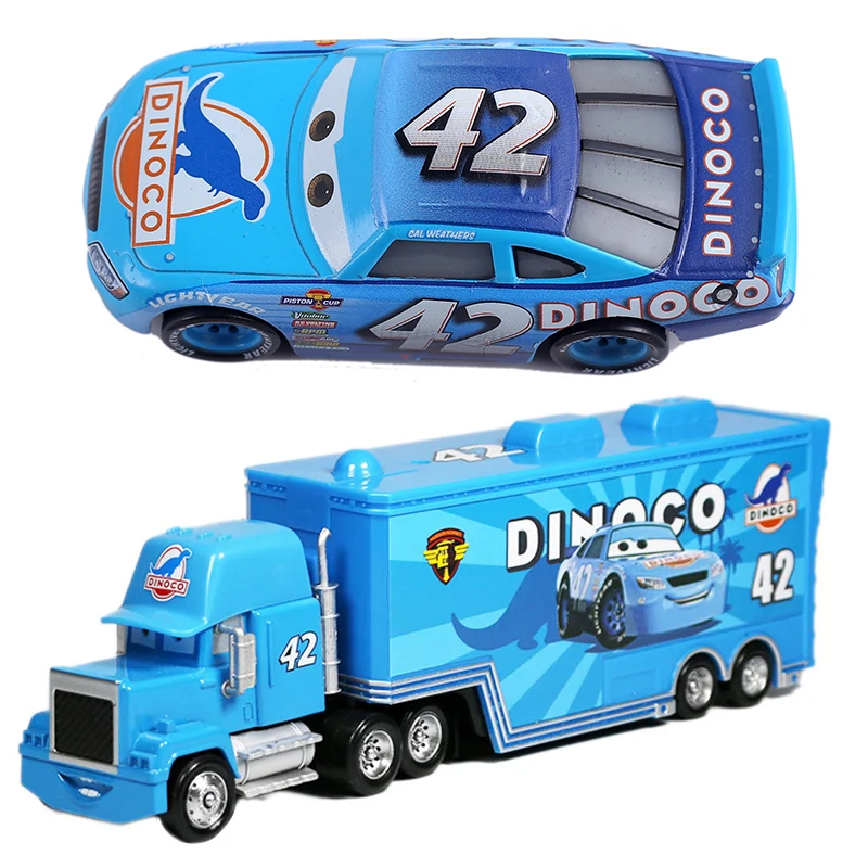 Acest set inspirat de celebra serie de filme Disney Pixar Cars îi prezintă pe personajele populare Mack Hauler și pilotul de curse Cal Weathers. Ambele mașini sunt realizate la scara 1:55 și combină construcția metalică cu prelucrarea detaliată a plasticului. Datorită acestui fapt, vor atrage nu numai tinerii pasionați de curse, ci și colecționarii care caută replici de înaltă calitate ale personajelor din lumea filmului. Jucăria le permite copiilor să retrăiască cursele palpitante și prietenia dintre eroii animați. Mașinile sunt compatibile cu alte modele din seria Cars.