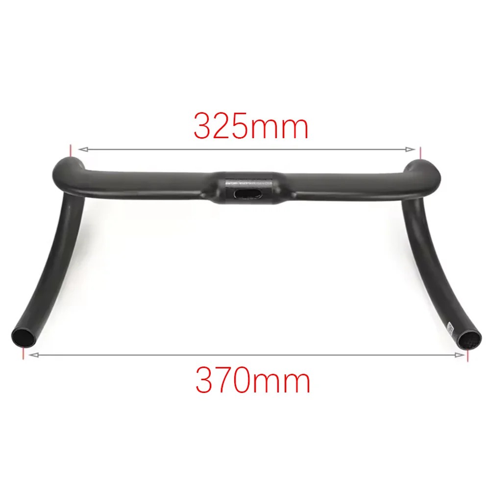 Lățimea totală a mânerele este de 370 mm, ceea ce oferă un raport echilibrat între stabilitate și aerodinamică. Partea superioară are o lățime de 325 mm, care este potrivită pentru o prindere fermă și sigură atât pe teren plat, cât și la urcare. Această dimensiune susține o mai bună control asupra bicicletei în diverse situații.