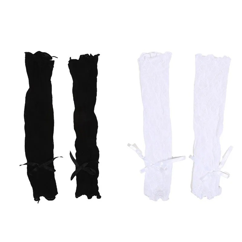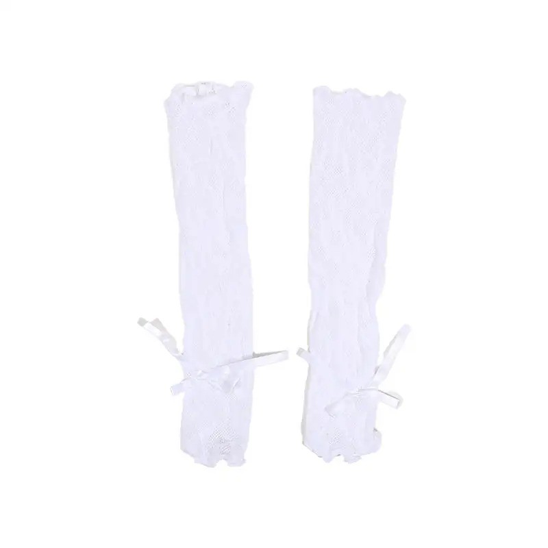 Mănuși din dantelă pentru femei fără degete, subțiri, transparente, respirabile, din nailon, lungi, cu fundițe, accesoriu de ocazie pentru purtare seara