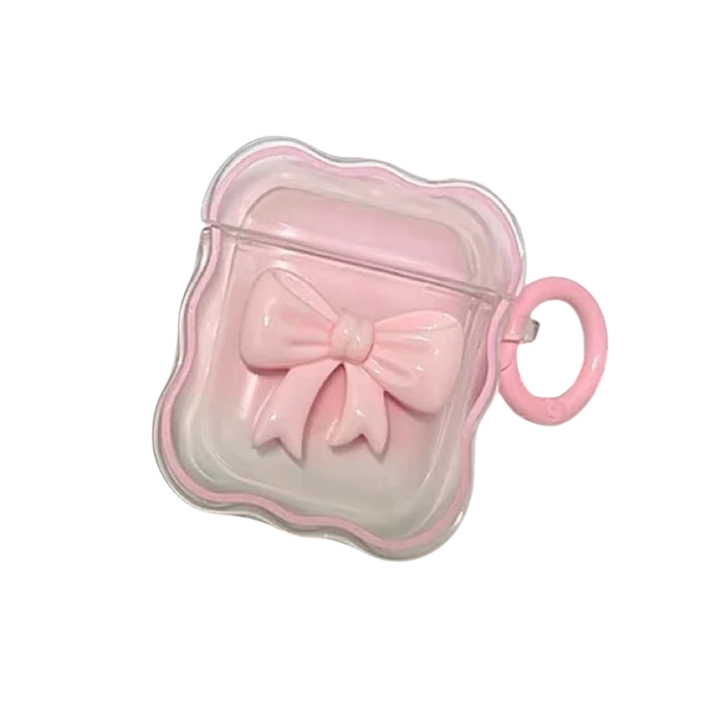 Minunat capac 3D cu fundiță pentru Apple AirPods 1 2 cu design ondulat și breloc Oferă protecție împotriva prafului pentru fete