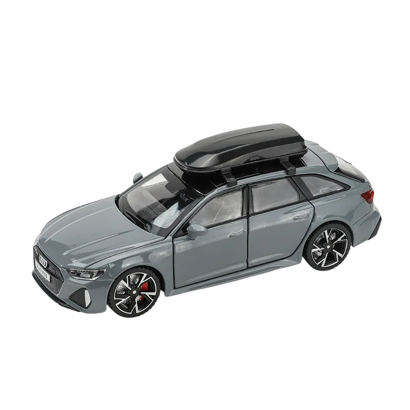 Modelul impresionează în special prin replica realistă a mașinii Audi RS6, care va încânta atât fanii mici, cât și pe cei mari ai automobilelor. Datorită scării practice 1:32, oferă un raport ideal între dimensiune și detaliile de execuție. Dimensiunile compacte 15,7 x 6,1 x 5,8 cm permit manipularea ușoară și expunerea modelului. Modelul este fabricat din aliaj metalic de zinc și aluminiu de calitate, care asigură rezistență, durabilitate și o viață lungă. Mașinuța este, de asemenea, potrivită atât ca jucărie, cât și ca model de colecție, ceea ce o face un cadou excelent pentru copii și adulți.