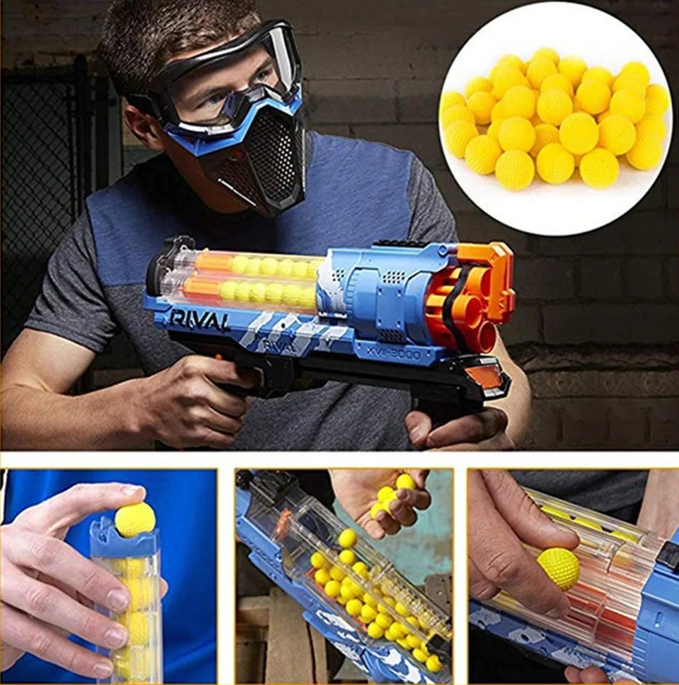 Muniția din spumă sub formă de bile galbene este alegerea ideală pentru toți iubitorii jocurilor de acțiune cu blastere pentru copii. Datorită fabricării precise, bilele oferă performanțe fiabile și un zbor stabil la fiecare tragere. Acestea sunt compatibile cu blasterele Nerf Rival și alte modele similare. Materialul moale din spumă ajută la asigurarea unei utilizări sigure în timpul activităților de joc. Pachetul mare oferă suficientă muniție pentru lupte mai lungi și mai intense fără a fi nevoie de reîncărcări frecvente.