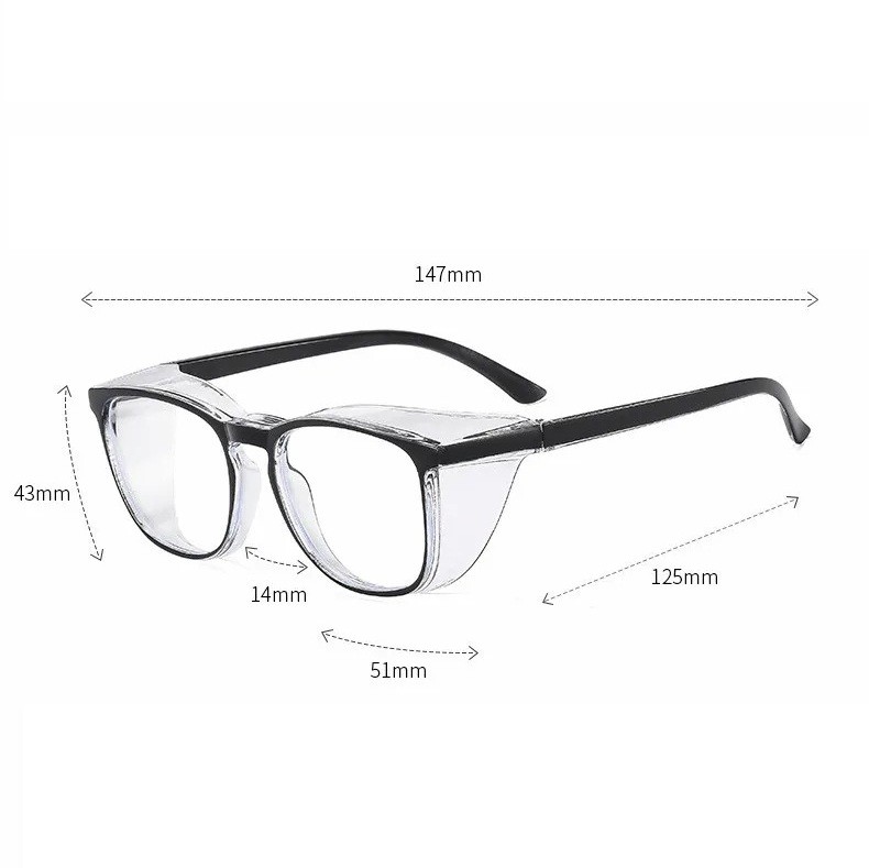 Ochelari de protecție 147 mm cadru PC 26 g Clare împotriva aburirii Protecție împotriva luminii albastre Capace laterale Ochelari de lucru