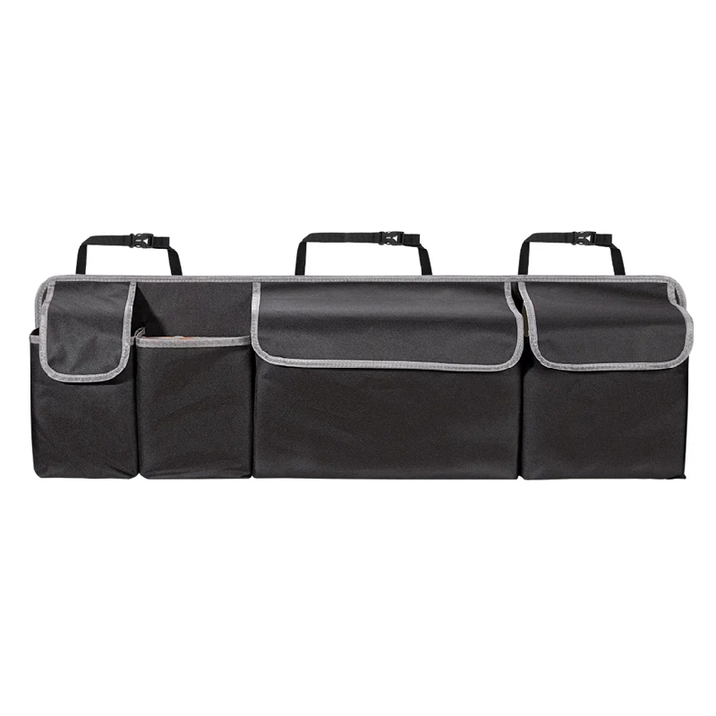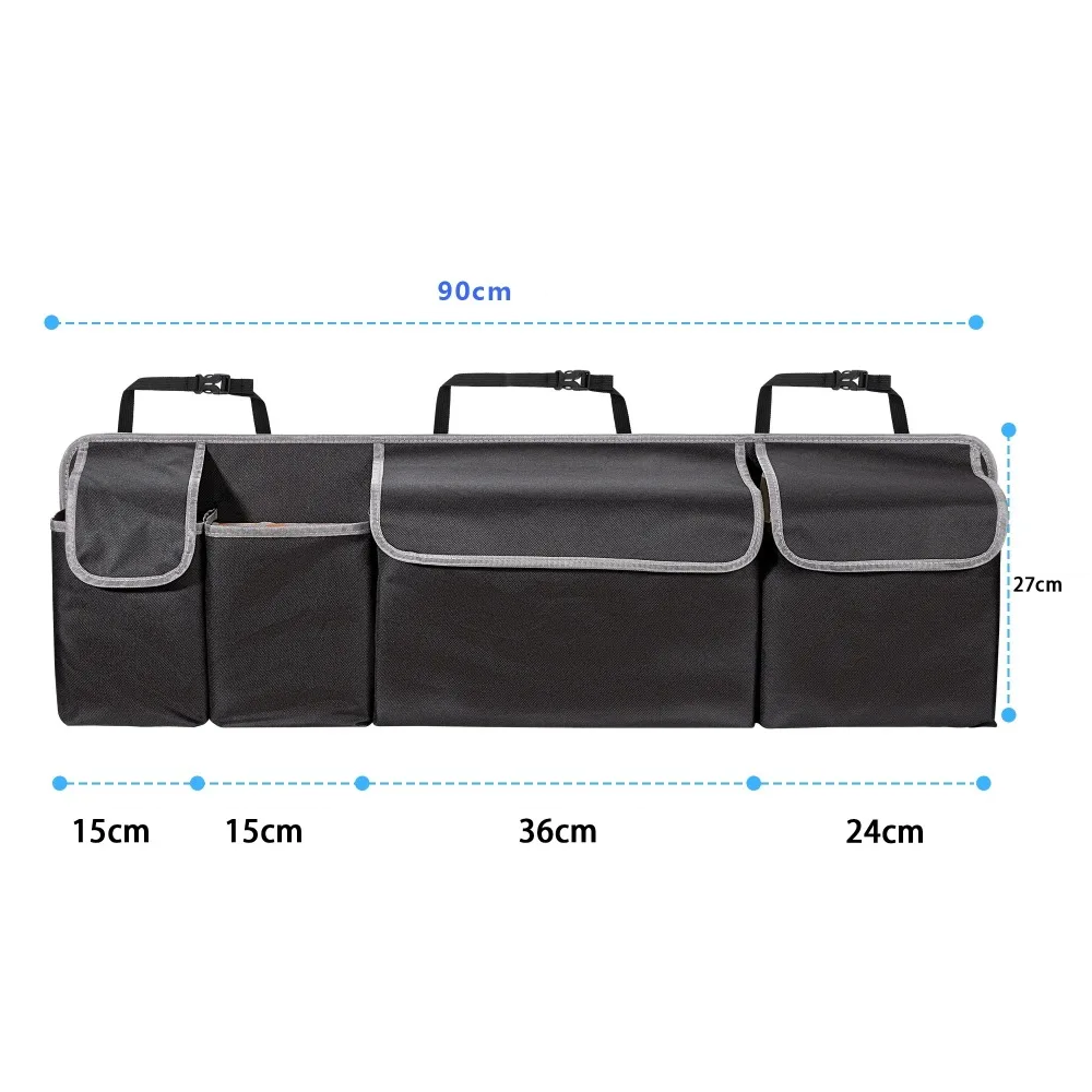Organizator pentru portbagaj auto 90 x 27 cm Oxford Suspendat pe bancheta din spate 3 buzunare închise cu velcro 1 buzunar deschis Sistem de depozitare