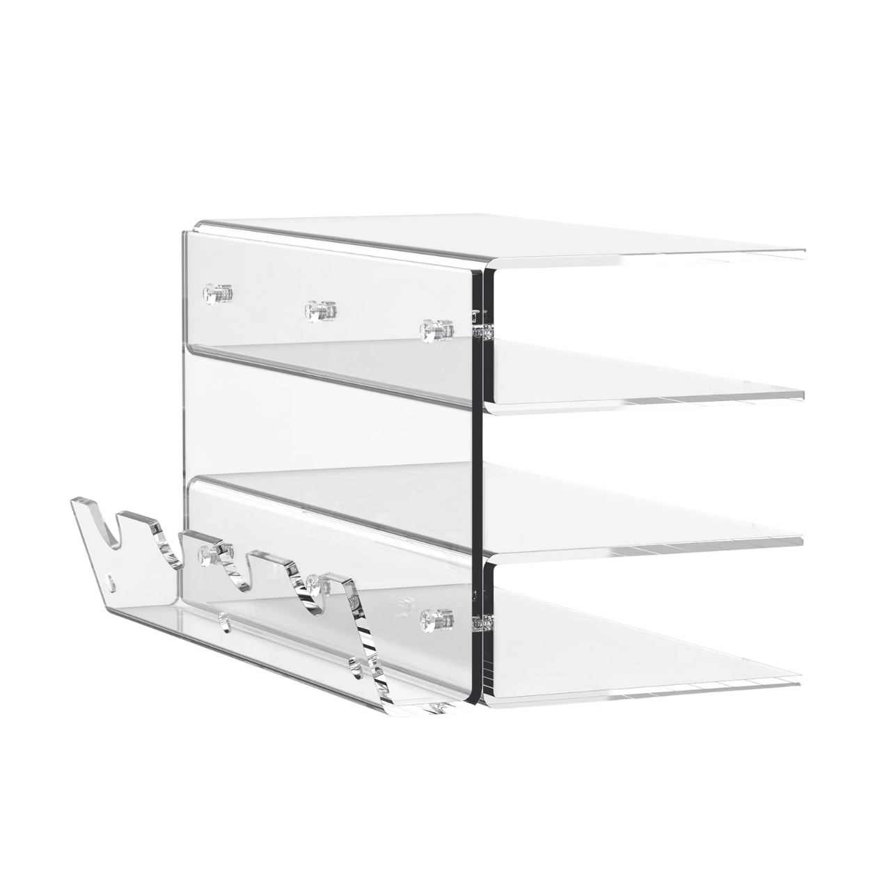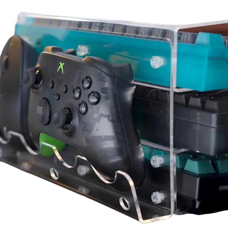 Organizator practic pentru tastaturi și mouse-uri, cu suport cu trei niveluri și spațiu de depozitare. Fabricat din acril, compact, ușor și eficient pentru organizarea spațiului de lucru. Descrierea completă