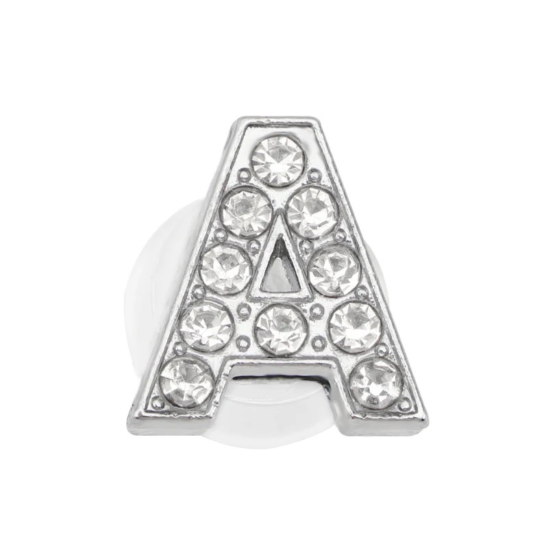 Ozdobă cu pietricele pentru crocsy litera A 2,5–3 cm decorațiune din PVC argintie pentru personalizarea încălțămintei și crearea inițialelor