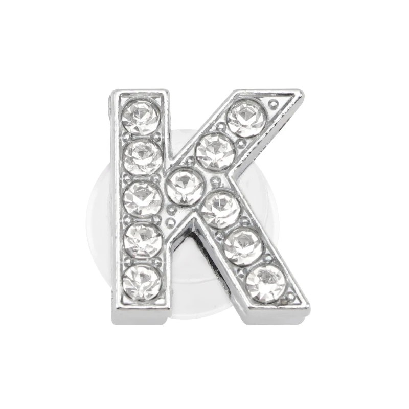 Ozdoba cu pietricele pentru crocsy litera K 2,5–3 cm decorație din PVC argintie pentru încălțăminte pentru personalizarea aspectului încălțămintei și crearea inițialelor