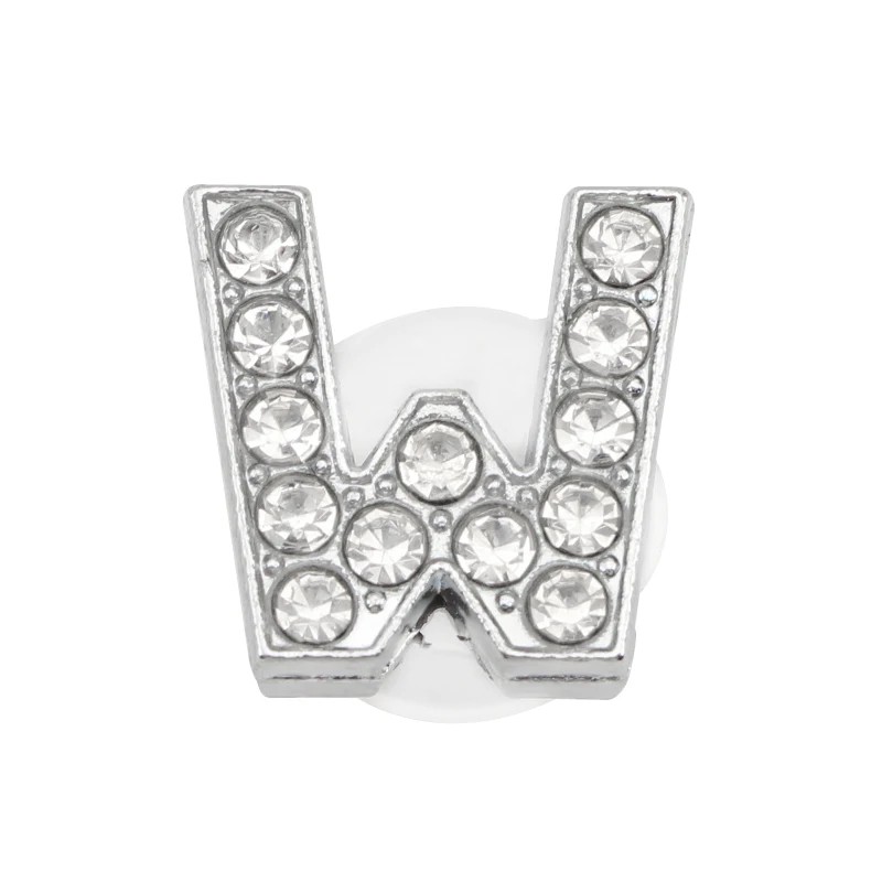 Ozdobă cu pietricele pentru crocsy litera W 2,5–3 cm decorare din PVC argintie pentru personalizarea încălțămintei și completarea aspectului