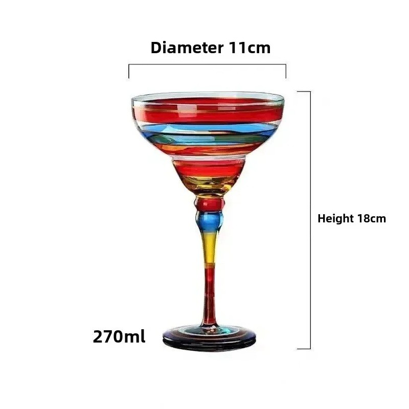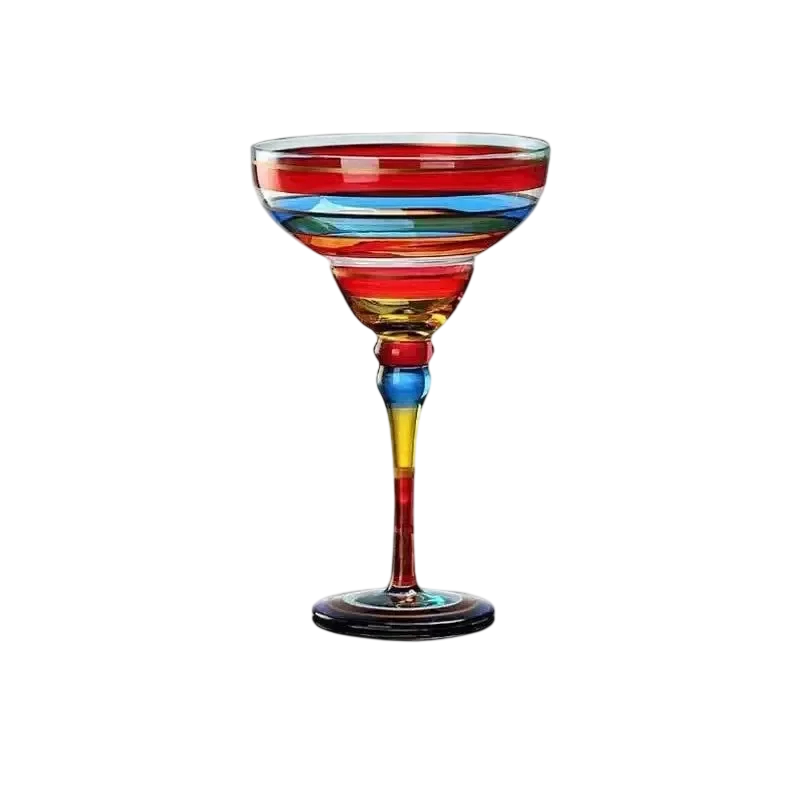 Pahar de cocktail colorat pe picior, potrivit pentru servirea cocktailurilor margarita și altor băuturi mixte la petrecerile de acasă. Descrierea completă
