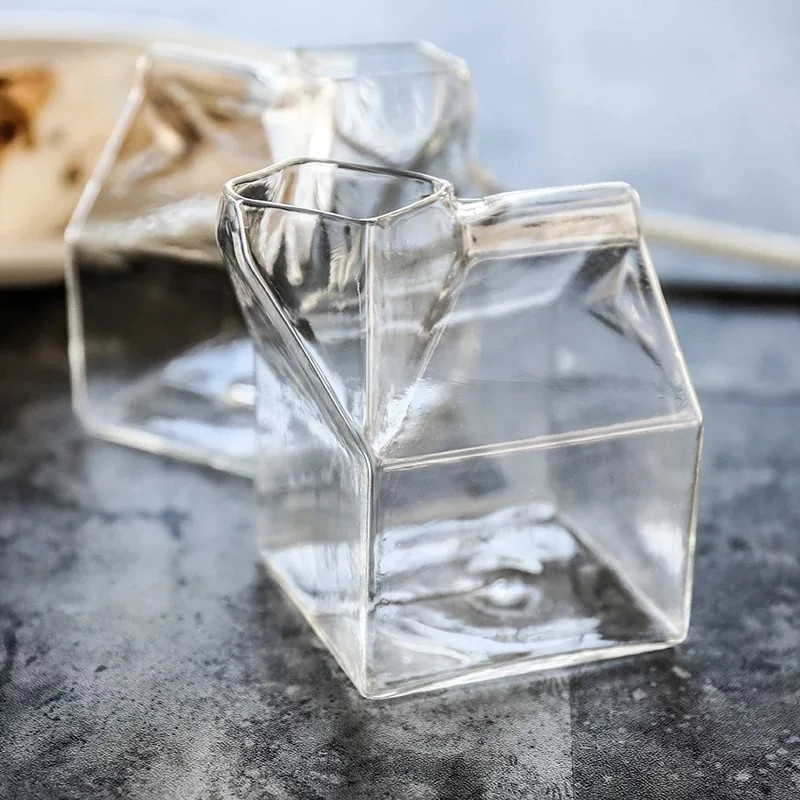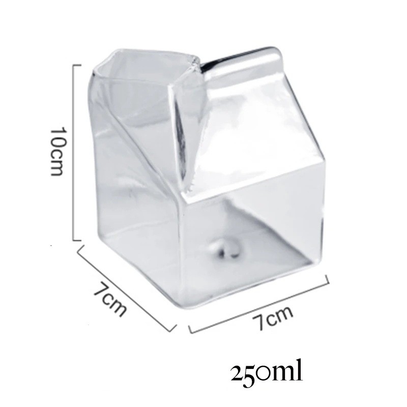 Pahar pentru lapte 250 ml din sticlă transparentă pahar decorativ în formă de cutie pentru lapte înălțime 10 cm dimensiuni 7 × 7 cm pentru băuturi