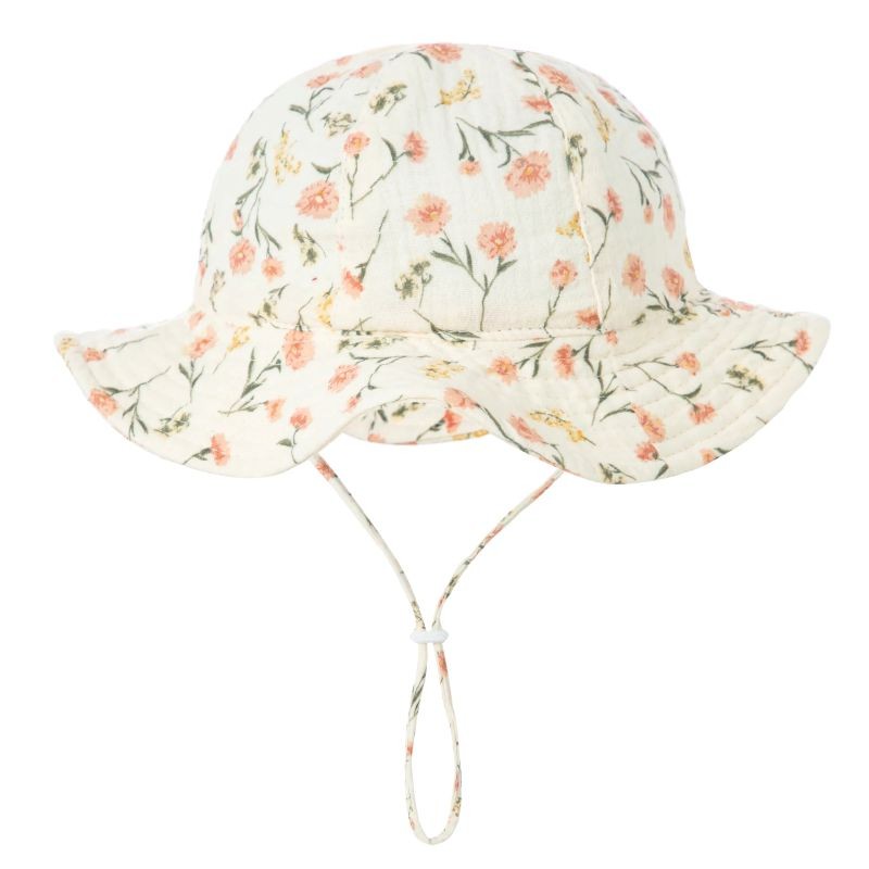 Pălărie de bumbac pentru copii cu flori și șnur de legare Circumferința capului 34–39 cm Vârful 23 cm Adâncimea 13 cm Pălărie de vară pentru bebeluși 3–12 luni