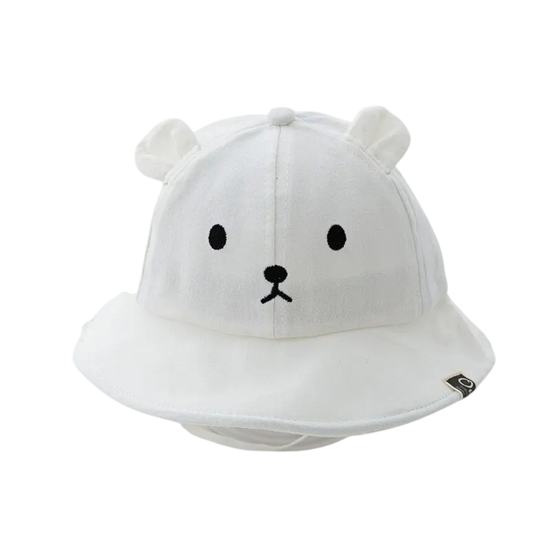 Pagina de start Pagina de start Îmbrăcăminte şi accesorii Copii Accesorii copii Pălării copii Pălărie din bumbac pentru copii cu urechi de ursuleț Circumferința capului 45–48 cm Pălărie pentru sugari 3–18 luni Pălărie de protecție de vară pentru bebeluși