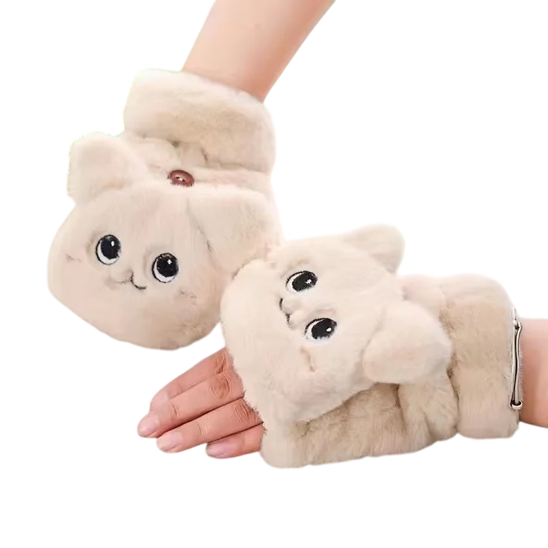 Palto de damă din pluș, mărime universală, mănuși de iarnă călduroase cu model de pisică din poliester pentru zilele reci