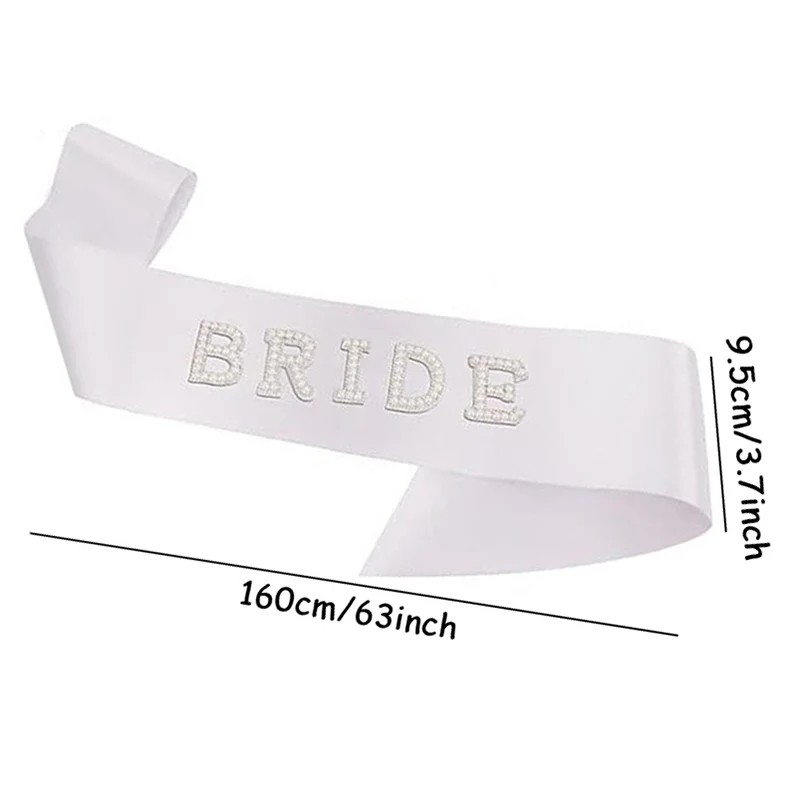 Panglica albă cu mesajul BRIDE este un accesoriu proeminent pentru viitoarea mireasă. Mesajul „BRIDE“ înseamnă „Mireasă“ și este realizat cu litere decorative cu un efect ornamental, care atrage atenția de la prima vedere. Panglica se poartă pe umăr și completează frumos ținuta la petrecerea de rămas bun la viața de burlăciță, sărbători tematice sau alte întâlniri de nuntă.