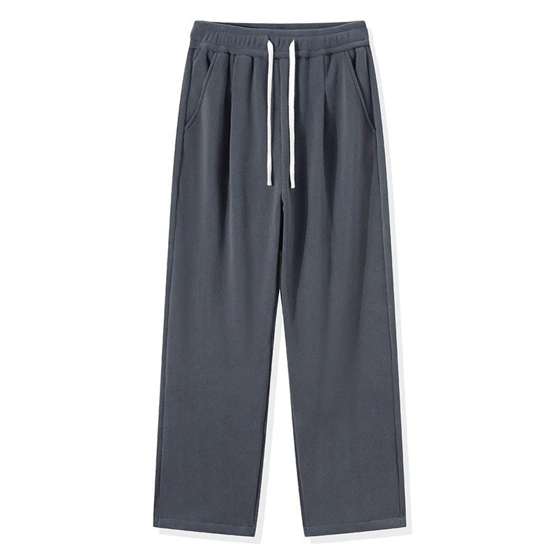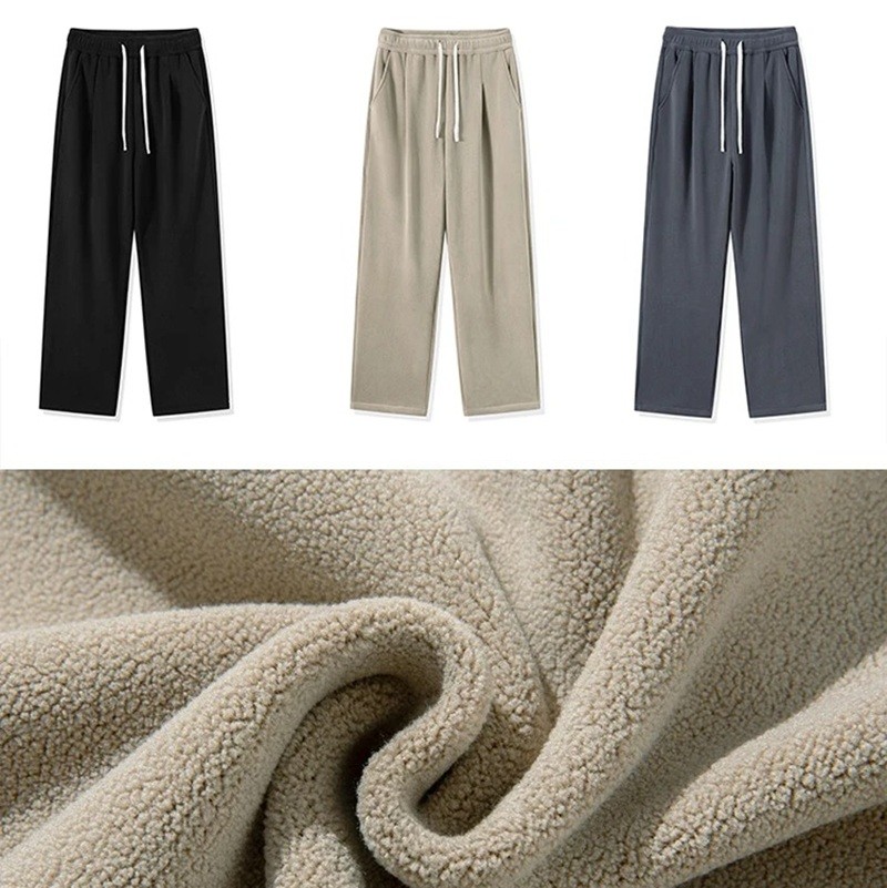 Pantaloni de trening bărbați cu blăniță pe interior, uni, cu buzunare și șnur. Fabricati din poliester și spandex, ideali pentru zilele de iarnă, călduroși și confortabili. Descrierea completă