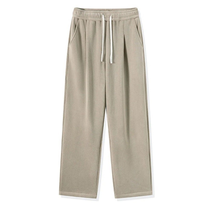 Pantaloni de trening pentru bărbați, uni, cu blană pe interior, cu buzunare, cu șnur, poliester, spandex, croi confortabil pentru iarnă