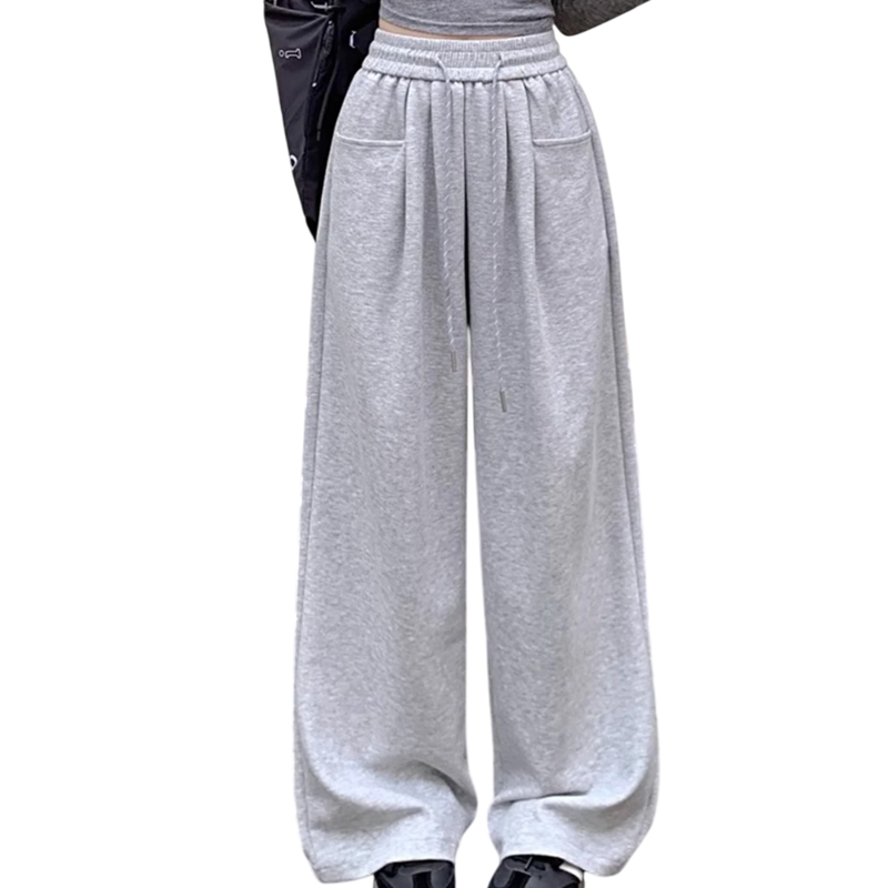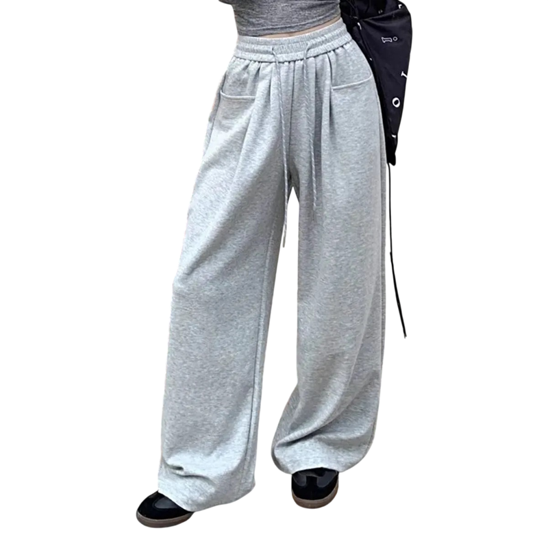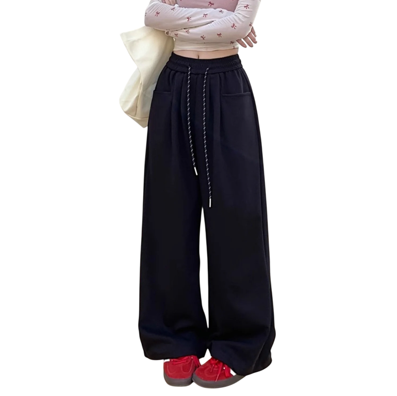 Pantaloni de trening confortabili pentru femei, cu buzunare și talie elastică cu șnur, fabricați din material ușor din poliester, ideali pentru sport și timp liber. Descrierea completă