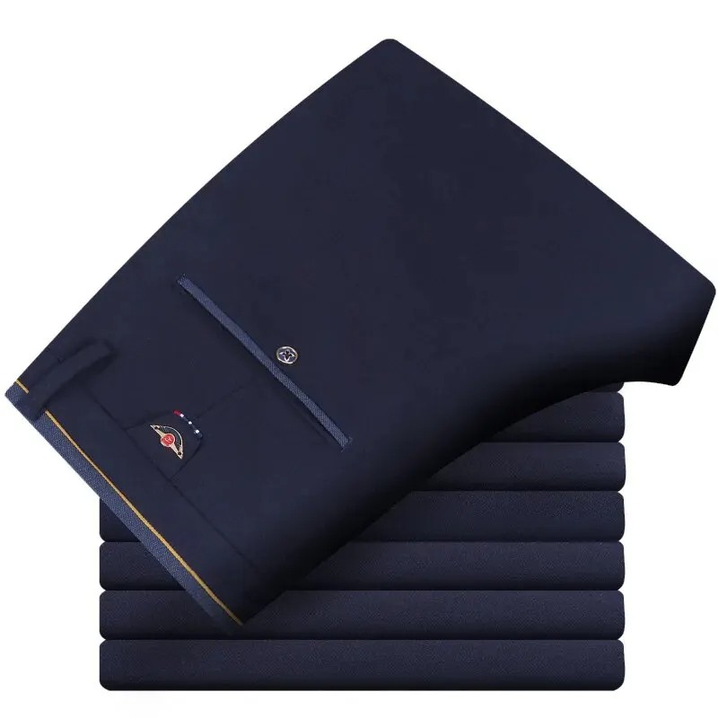 Pantaloni elastici formali pentru bărbați, cu croială dreaptă. Pantaloni formali eleganți pentru serviciu și ocazii formale. Material confortabil.