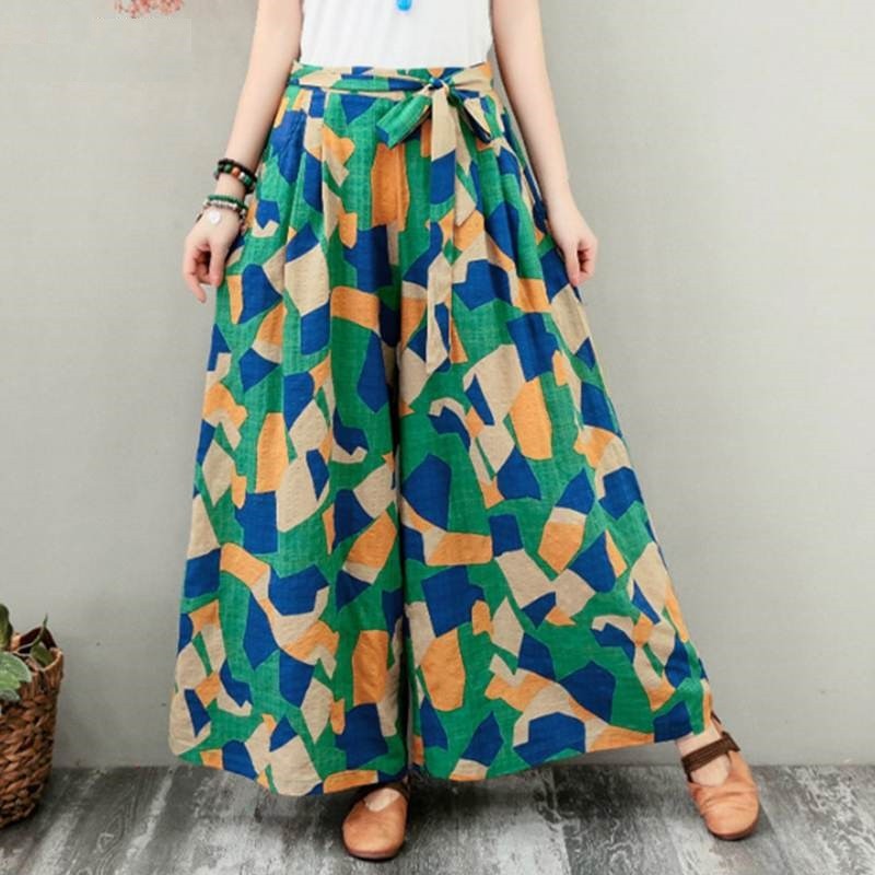 Pantaloni largi de femei cu model