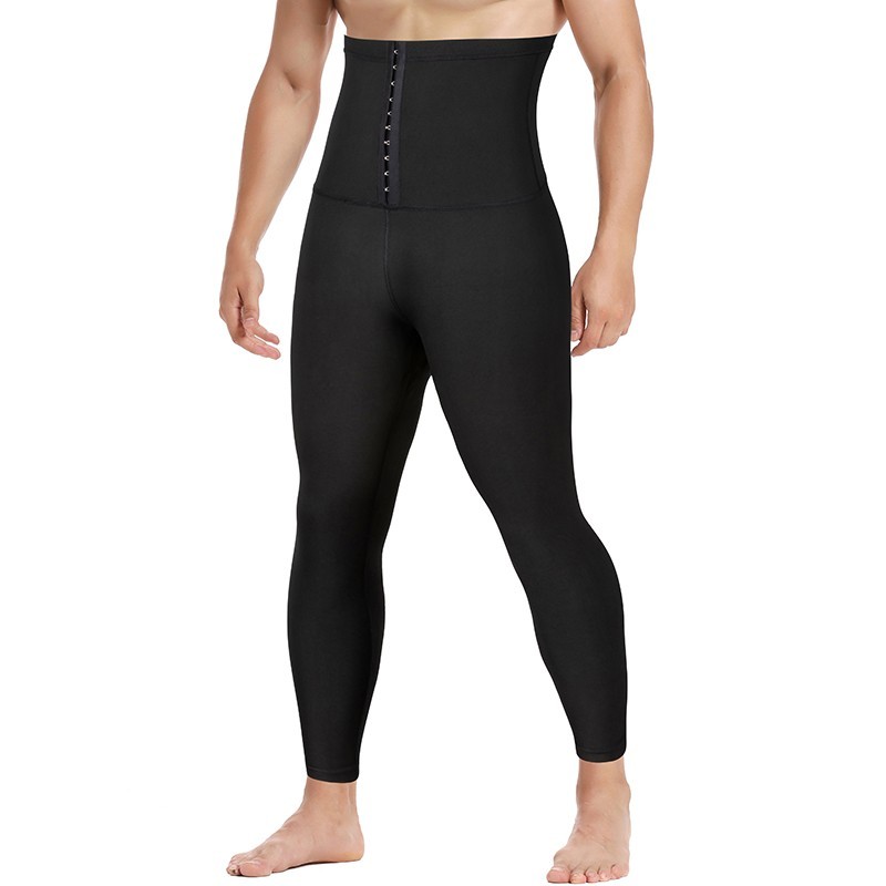 Pantaloni modelați pentru bărbați cu talie înaltă Pantaloni negri de compresie termică Pantaloni de slăbire de fitness pentru arderea grăsimilor cu închidere cu cârlig