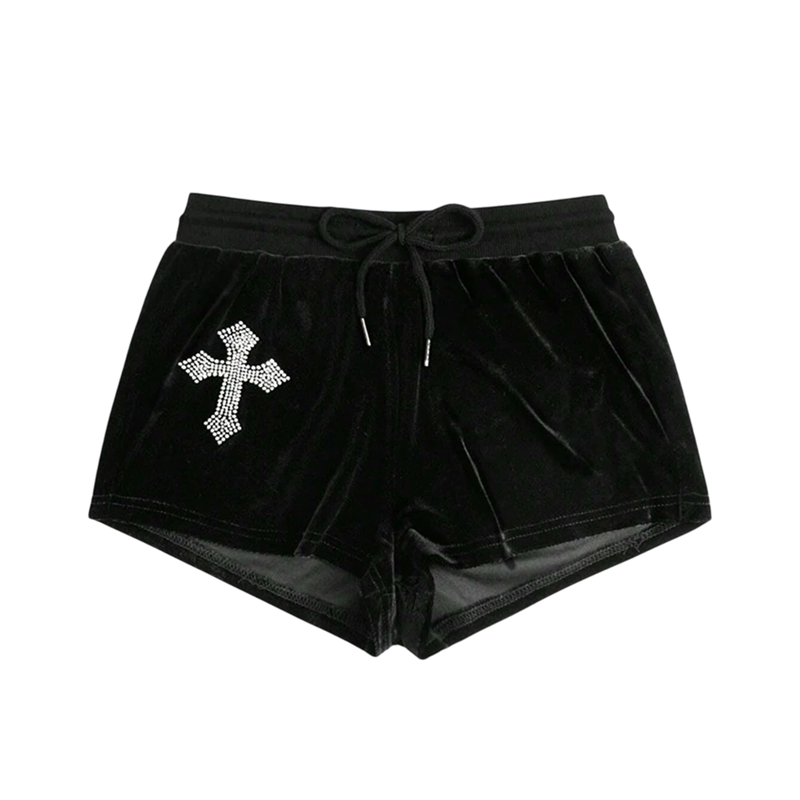 Pantaloni scurți strălucitori și strâmți pentru femei, cu șnur, sport, cu model de cruce cu diamant, elastici, pentru vară