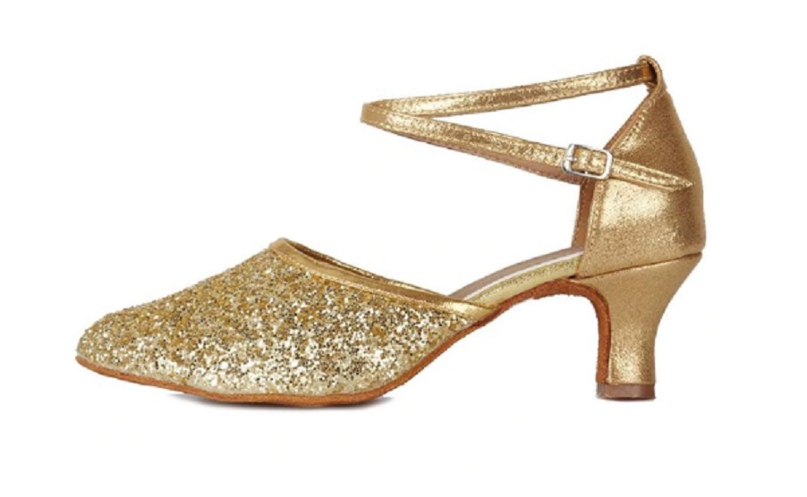 Aceste încălțăminte de dans cu toc decorate cu paiete sunt foarte confortabile.