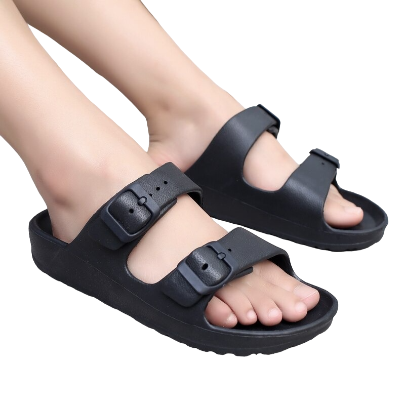 Acești papuci cu bretele sunt potriviți atât pentru purtare acasă, cât și pentru plimbare afară.