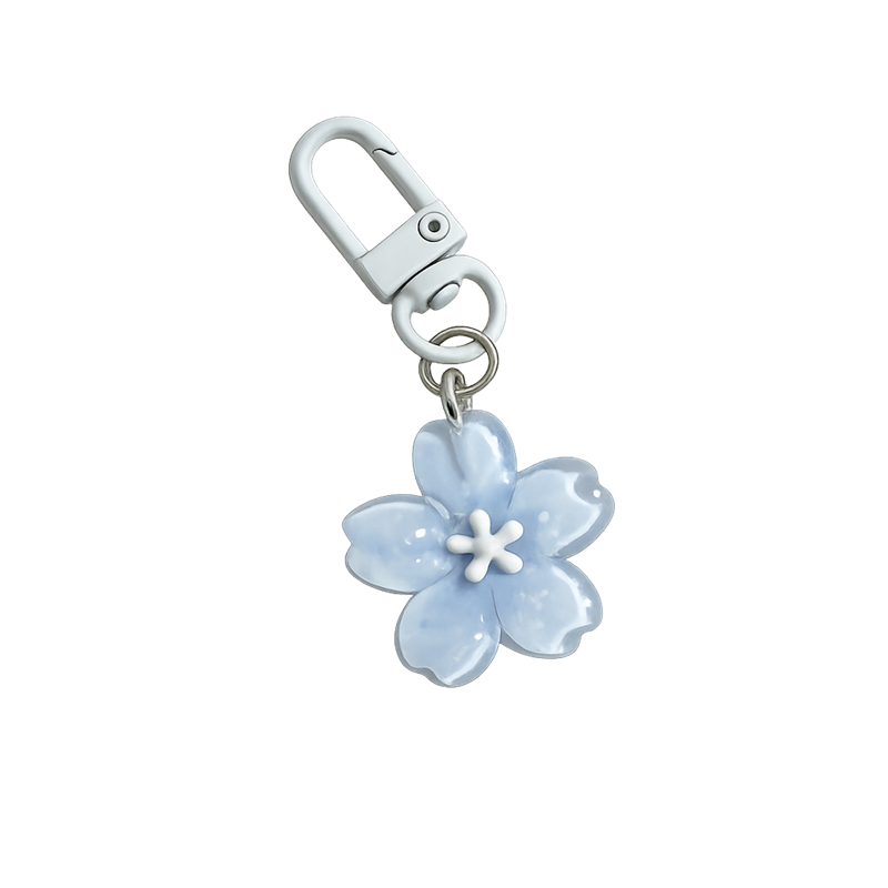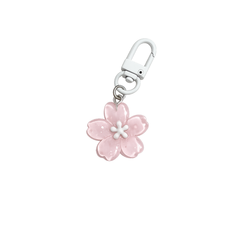 Accesoriu floral elegant din rășină cu motiv de floare de cireș, este o decorațiune delicată pentru chei, rucsac sau geantă. Descrierea completă