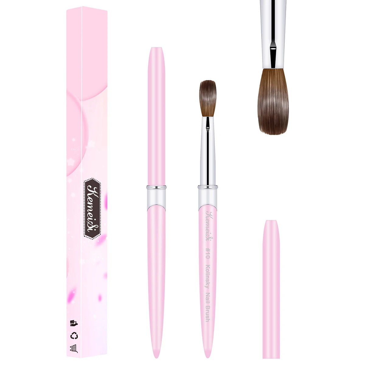 Instrument de manichiură precis, potrivit pentru lucrul cu gel și acril. Formă ergonomic, capac de protecție și peri de calitate pentru modelarea precisă a unghiilor. Descrierea completă