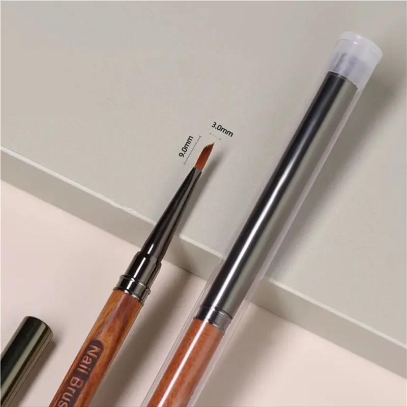 Pensulă cosmetică pentru unghii triangulară, mâner din lemn pentru pictură florală pe unghii, lățimea periilor 3,0 mm, lungimea periilor 9,0 mm
