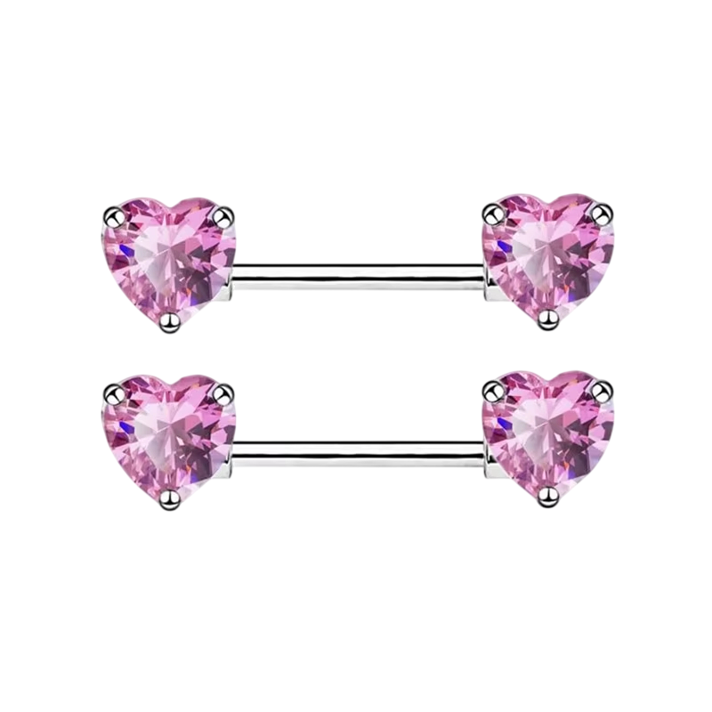 Pereche strălucitoare de bijuterii pentru sfârcuri cu motiv în formă de inimă de dimensiune 1,6 mm adaugă corpului o notă delicată de romantism, stil feminin și accent personal elegant. Descrierea completă