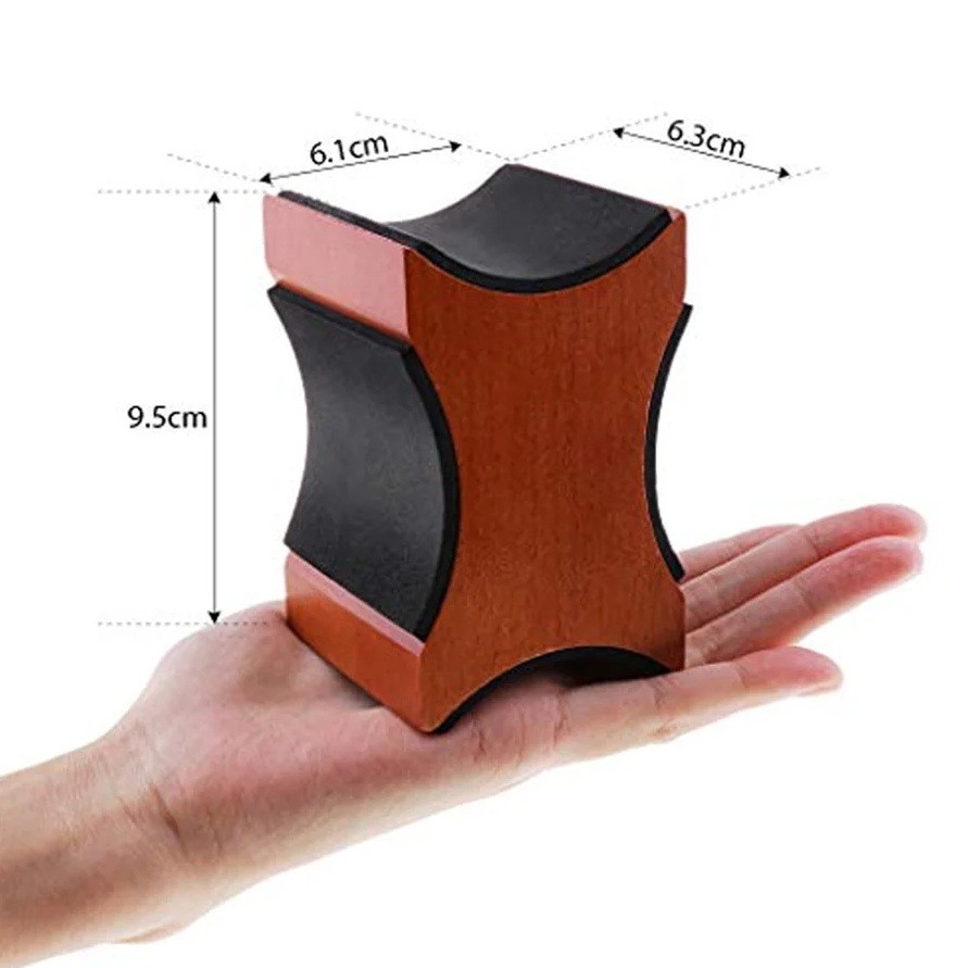 Această pernă de sprijin din lemn cu umplutură pentru gâtul chitarei este un ajutor practic pentru toți muzicienii, tehnicienii de chitară și lutierii. Servește ca un suport stabil pentru gât în timpul întreținerii, acordării, curățării sau schimbării corzilor. Datorită celor două înălțimi diferite, poate fi utilizată pentru diferite tipuri de instrumente – de la chitări acustice până la modele electrice.
