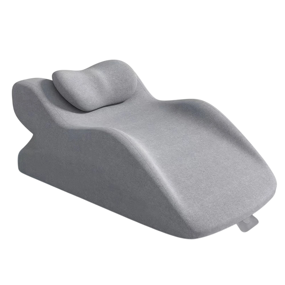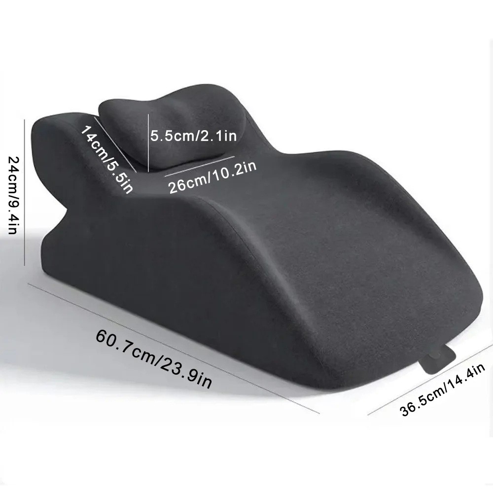 Perna este concepută cu mai multe zone de suport, care ajută la distribuirea uniformă a presiunii pe diferitele părți ale picioarelor. Forma specială oferă suport gleznelor, gambei, genunchilor și coapselor și contribuie la o poziție mai confortabilă a corpului în timpul odihnei. Construcția cu o înclinare ușoară de aproximativ 22° ajută la ridicarea naturală a picioarelor și crește confortul în timpul relaxării. Perna este potrivită și pentru citit, vizionarea televizorului sau pentru odihnă după o zi obositoare. Designul ergonomic ajută la crearea unei poziții naturale și stabile a corpului.
