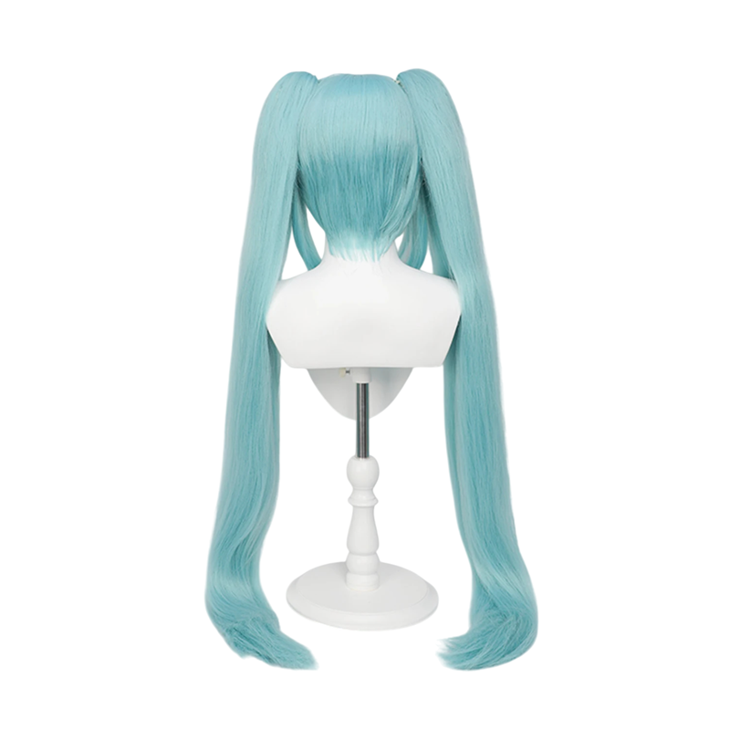 Perucă Hatsune Miku 110 cm anime cosplay lungă cu două cozi sintetice din fibră rezistentă la temperaturi ridicate pentru Halloween și costume de Crăciun