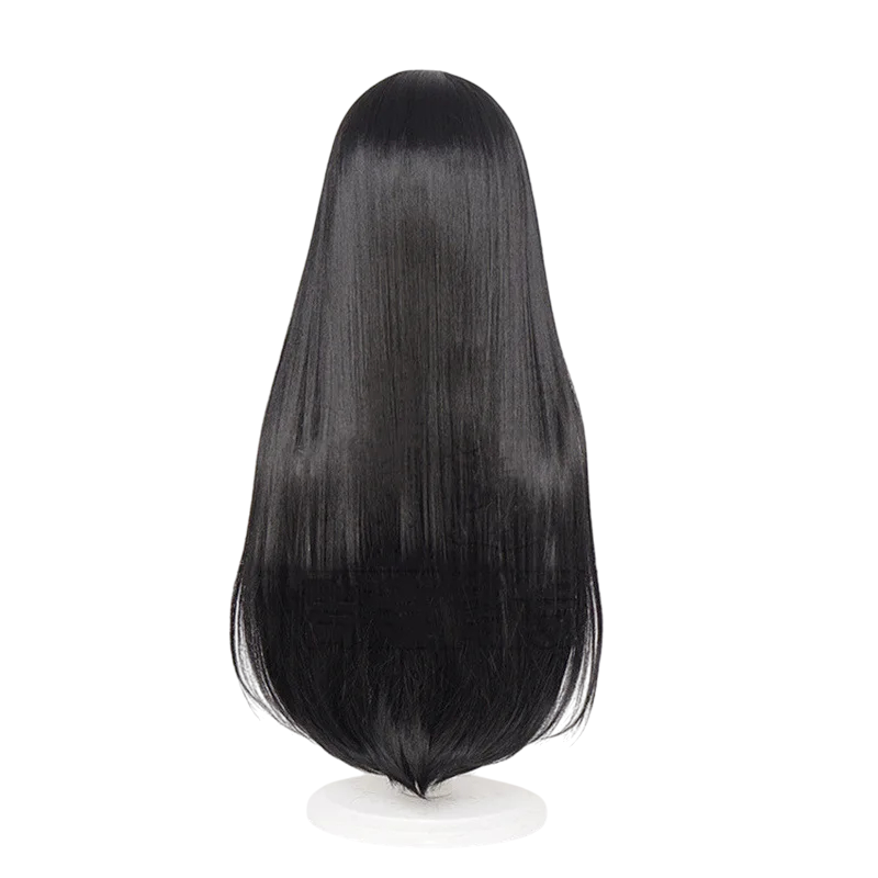 Perucă dreaptă elegantă din fibră sintetică rezistentă la temperaturi ridicate, de culoare neagră. Lungime 60 cm. Aspect natural, ușoară și respirabilă pentru cosplay sau purtare zilnică. Descrierea completă