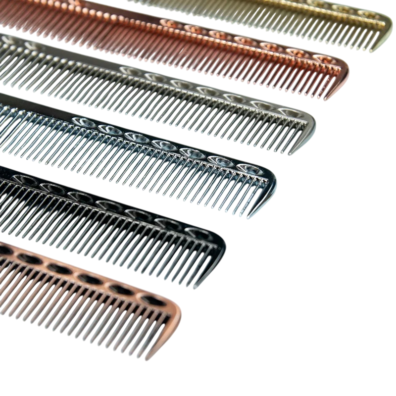 Pieptene ușor din aluminiu cu dinți fini permite o separare precisă a părului, coafare ușoară și întreținerea zilnică a coafurii acasă sau în salon. Descrierea completă