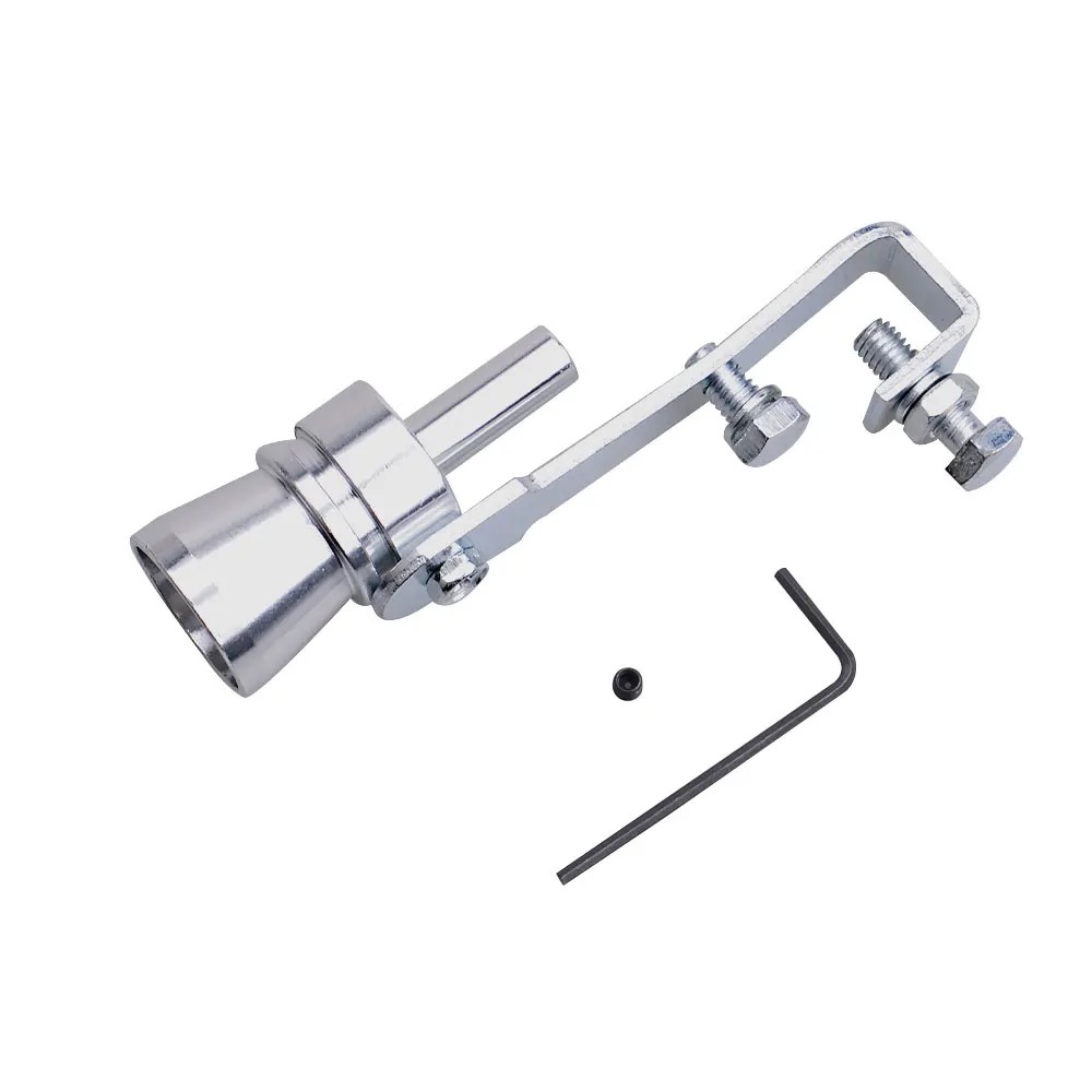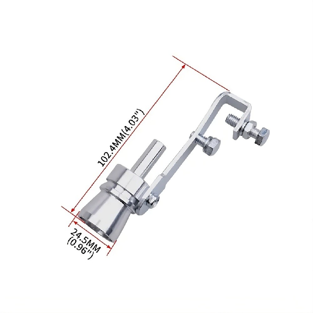 Piesa turbo argintie de dimensiune M 102,4 × 24,5 mm este concepută pentru toți cei care doresc să ofere mașinii lor un sunet și un aspect mai sportiv. După instalarea în capătul de evacuare, aceasta poate produce un efect de suflat în timpul mersului, reminiscent de sunetul turbocompresorului sau al supapei de descărcare, fără a fi necesară montarea unui sistem turbo real. Datorită utilizării aluminiului 6061 T-6, ușor și rezistent, piesa este solidă, stabilă termic și în același timp suficient de ușoară. Instalarea este rapidă și simplă, folosind un șurub de fixare.