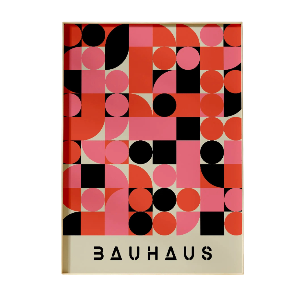 Plakat minimalist inspirat de direcția iconică Bauhaus aduce o estetică modernă bazată pe forme simple și un contrast de culori puternic. Combinația de roșu, roz și negru creează o compoziție dinamică, care va revitaliza imediat interiorul și îi va oferi un caracter distinctiv. Datorită dimensiunii mai mari, imaginea devine un element dominant al camerei și atrage atenția în mod natural. Stilul geometric abstract susține atmosfera modernă și armonia spațiului. Printul de calitate pe pânză păstrează claritatea liniilor și saturația culorilor pe termen lung.
