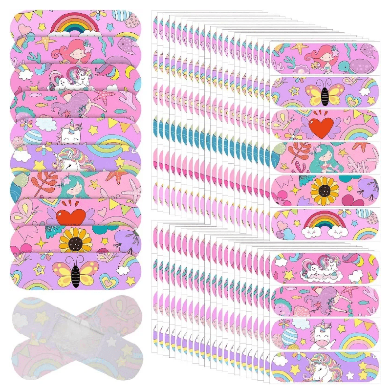 Plasturi impermeabili 72 x 19 mm 50 buc Plasturi roz și violet pentru copii cu unicorni, motive cu prințese ale naturii Design drăguț