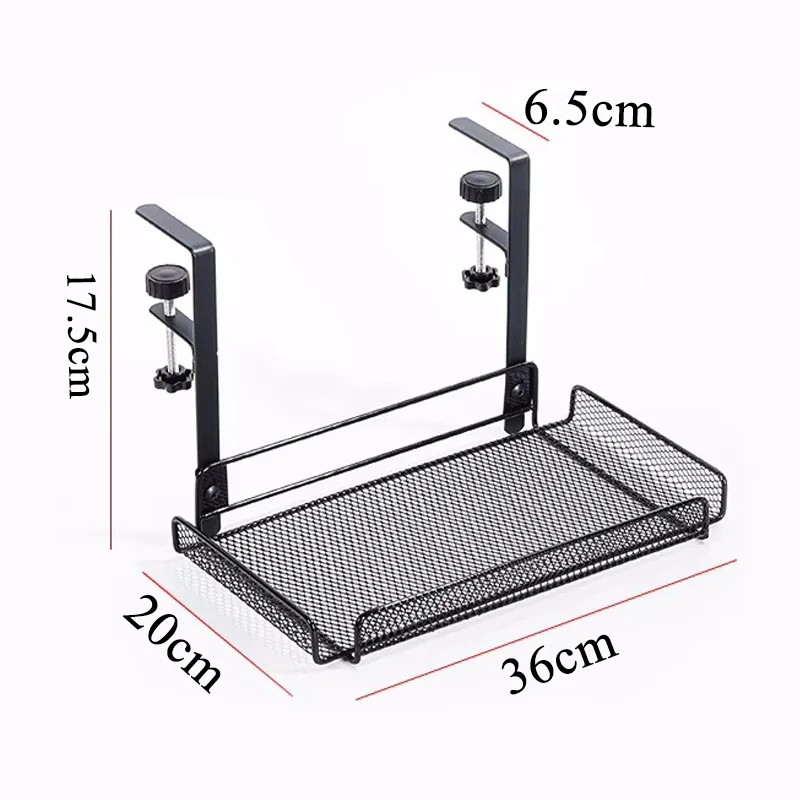 Poliță metalică suspendată cu suport cu șurub 36x20x17.5 cm neagră, poliță de depozitare din plasă pentru masă sau perete, practică