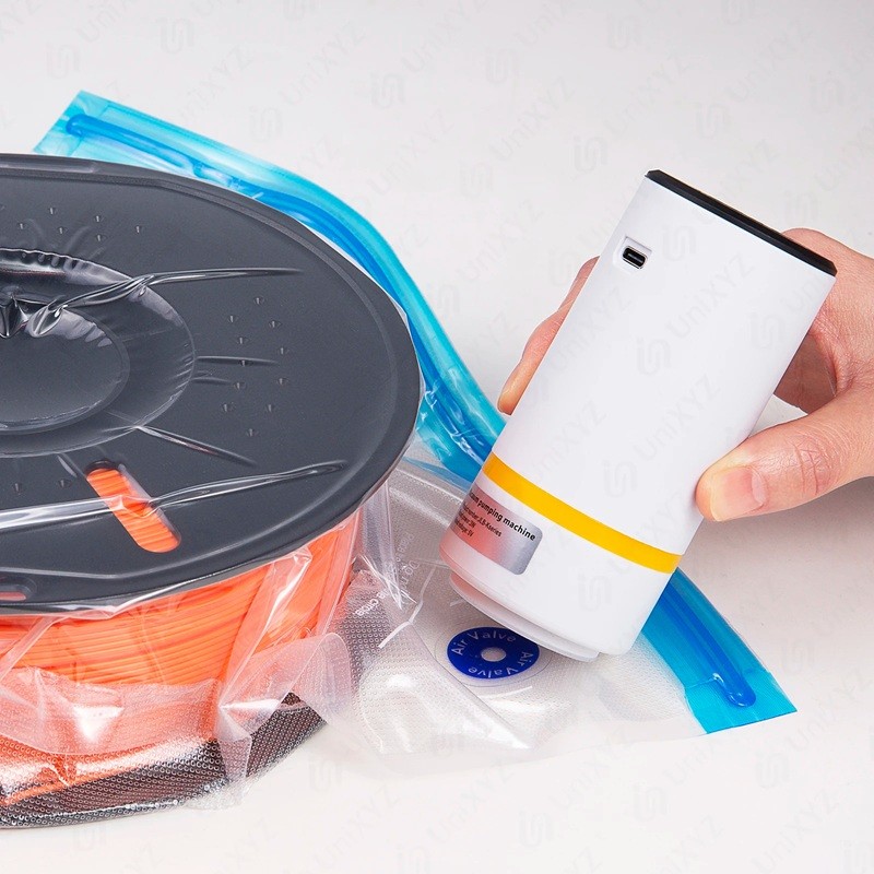 Această pompă electrică reprezintă o soluție rapidă și convenabilă pentru aspirarea aerului din saci speciali pentru filament destinați păstrării pe termen lung a materialelor de imprimare 3D. Datorită funcționării automate, oferă o utilizare foarte simplă și o aspirare fără efort, ceea ce facilitează semnificativ protecția fibrelor împotriva umezelii. Filamentele sunt extrem de sensibile la umiditate, de aceea depozitarea corectă a acestora este esențială pentru obținerea unei imprimări de calitate și stabile, fără bule, rupere sau flux neregulat al materialului. Această pompă simplifică semnificativ procesul de depozitare și prelungește durata de viață a materialelor dumneavoastră de imprimare.