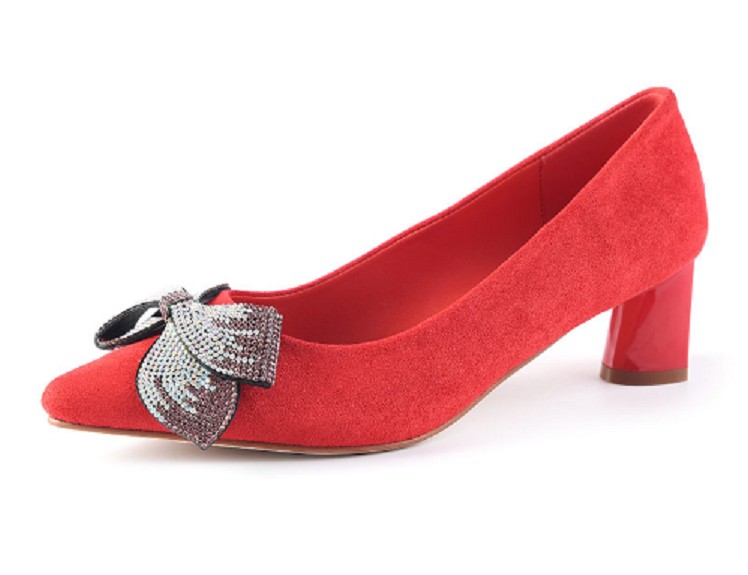 Pagina de start Pagina de start Încălţăminte Femei Pantofi damă Pompe de piele intoarsa de dama cu panglica Rosie J1762