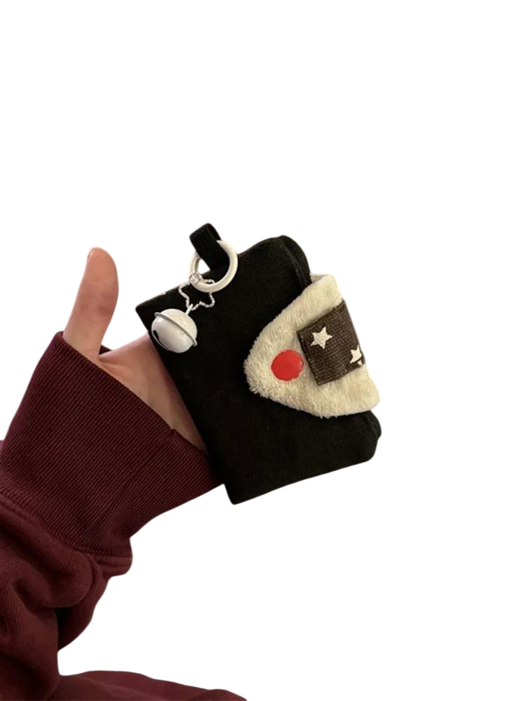 Portofel textil practic în nuanță neagră cu clips și clopoțel decorativ oferă o construcție ușoară și o suprafață plăcută la atingere. Descrierea completă